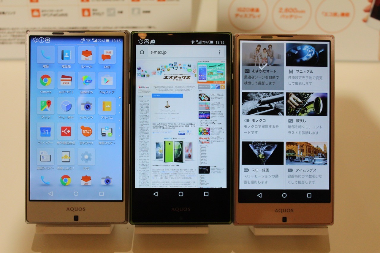 昨夏モデル「AQUOS SERIE SHL25」の後継機種で、今春モデルでコンパクトな「AQUOS SERIE mini SHV31」に続く高音質通話サービス「VoLTE」に対応し、新たに64bit対応オクタコアCPU(2.0GHzクアッドコアCPU+1.5GHzクアッドコアCPU)のQualcomm製「MSM8994(Snapdragon 810)」に強化され、下り最大225Mbpsに対応するなど、さらなる進化を遂げています。