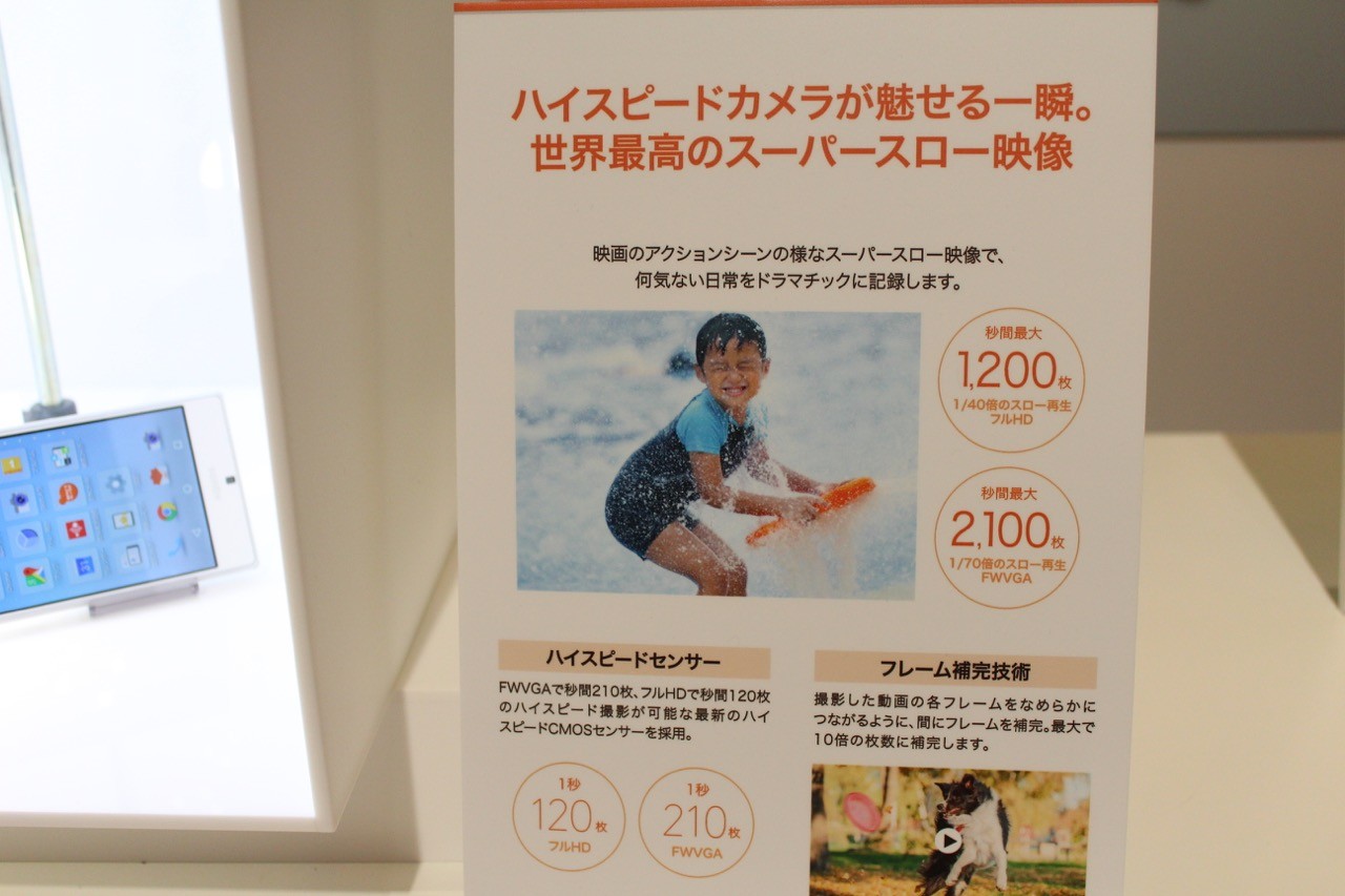 また、新たに世界最高最大210fpsのスーパースロー映像の再生に対応し、眼ではとらえられない一瞬を撮影し、スーパースロー映像で楽しめ、スーパースロー映像をMP4ムービーとしてSNSなどに簡単に共有できるようになっています。210fpsではFWVGA(854×480ドット)までで撮影でき、120fpsならフルHD(1920×1080ドット)まで撮影可能。その他、長時間の動画を短くする人気のタイムラプスにも標準で対応しています。