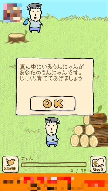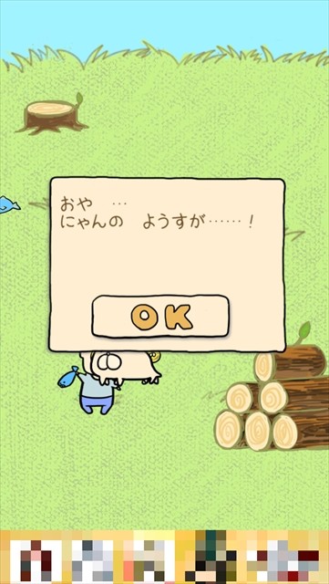 ダウンロード後にアプリを起動すると、ほのぼのした音楽が流れ、遊び方とゲームストーリーが流れるので「OK」をタップしていきましょう。