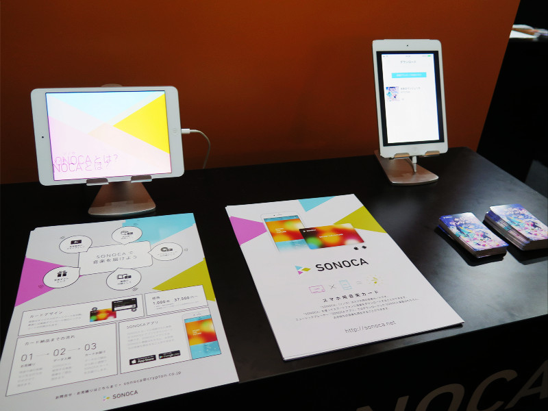 今回は第1回先端コンテンツ技術展エリア内のクリプトン・フューチャー・メディアブースにてスマートフォン(スマホ)など用の音楽再生アプリと専用の音楽ダウンロード用カードの「SONOCA(ソノカ)」が展示されていたので紹介します。