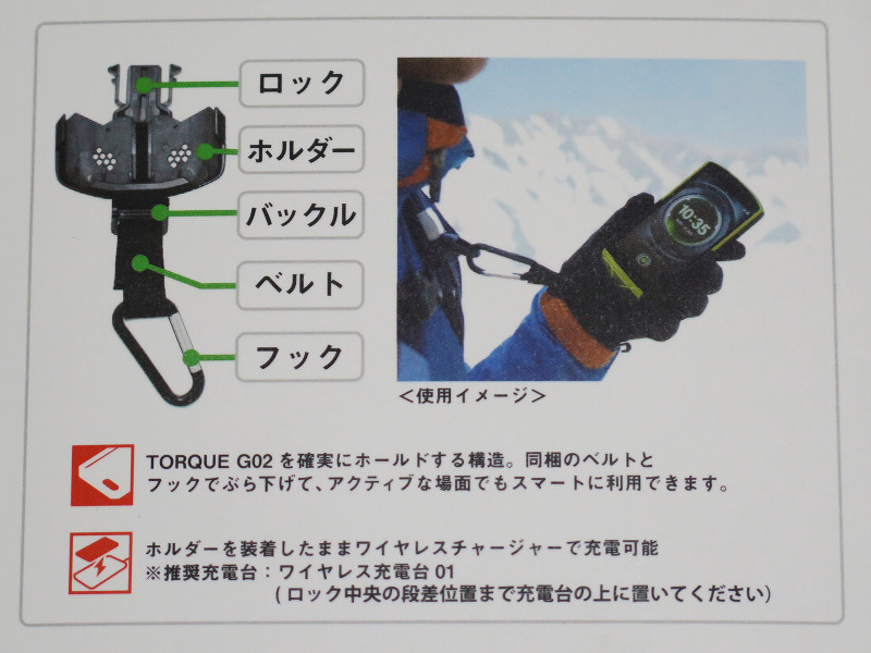 とはいえ、せっかくのタフネス仕様に見合わないケースを使ってしまっては元も子もないのでそのまま使うという人が多いかと思いますが、そんな中でも今回はTORQUE G02をさらにアクティブに活躍させることができるようになる純正オプション「TORQUE G02 Hard Holder」を紹介したいと思います。