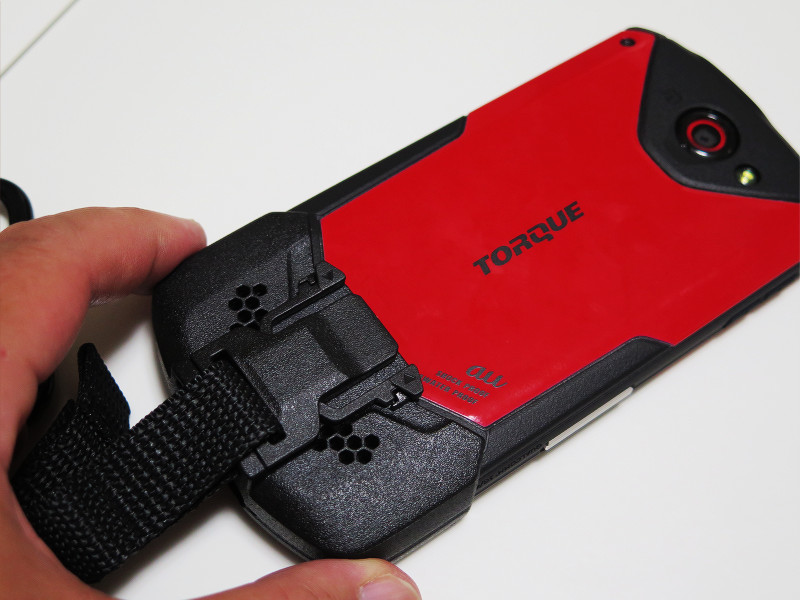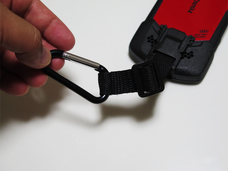あくまでTORQUE G02を落とさない程度の強度のカラビナ風フック