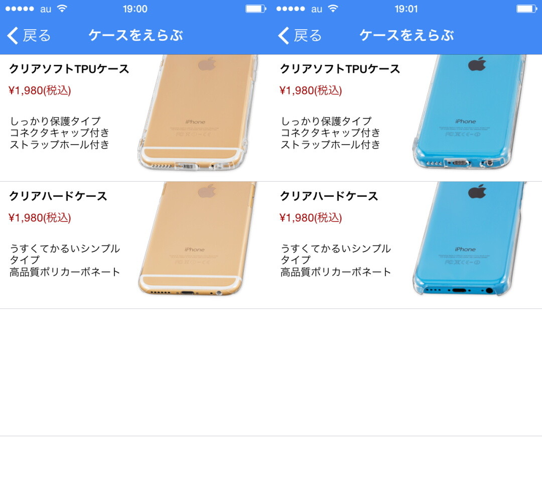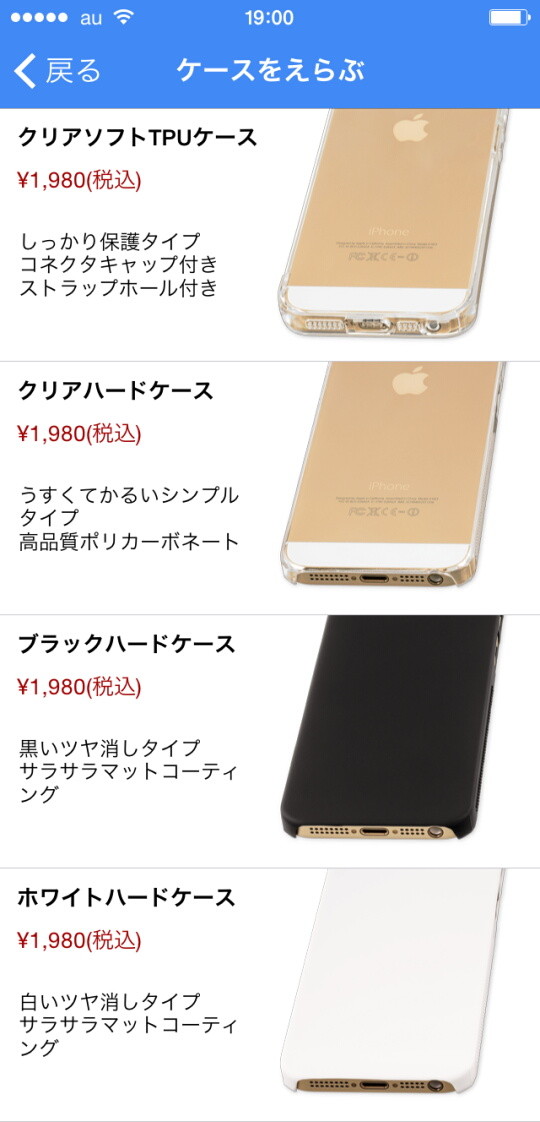 iPhone 5/5sの「ケースをえらぶ」画面