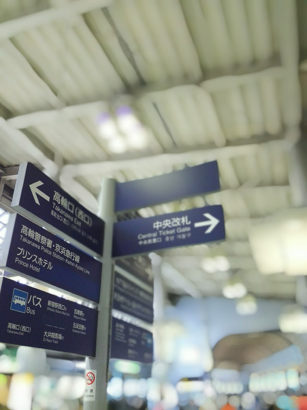 遠景にピントを合わせたところ、看板だけがボケた。本来なら左に見える景色や手前の天井もボケる筈なのだが・・・