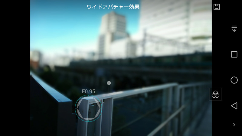 honor6 Plusは人間と同じ目をもっていると言うこともあり、撮影前の画面上でリアルタイムにピントの位置に対するボケを確認することができる。さらにこうしてピント位置と絞りを決めて撮影した後、撮った写真に対して再度ピント位置や絞り(被写界深度)を変えるということもできる。