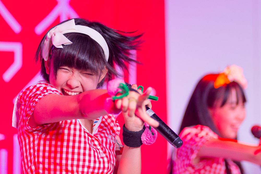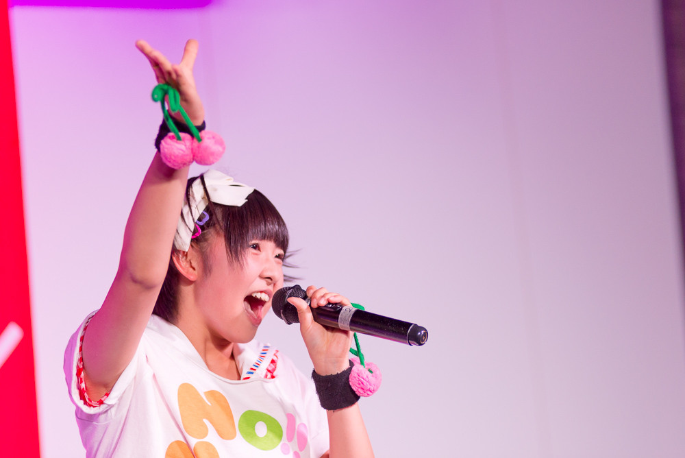 一曲目から元気にパフォーマンスをする彼女たちに合わせて、会場もヒートアップ。2曲目はリーダーのののソロ曲「No!!No!!!」を披露した。オリジナル楽曲のほかに、歌とダンスのパフォーマンスを打ち出した「魔法使いサリー」のテーマソングをカバーするなどあっという間の30分となった。
