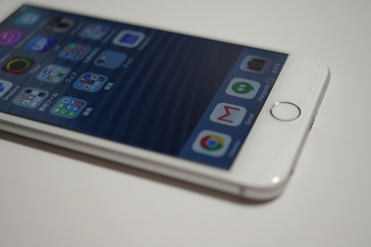 さっそくiPhone 6 Plusをアルコールクリーニングパッドなどで綺麗にしてSmart Glass Screen Protectorを貼ってみます。Smart Glass Screen Protectorは他の通常のガラス保護シートと同じように全面透明で、特に回路やセンサーがあるようには見えないです。