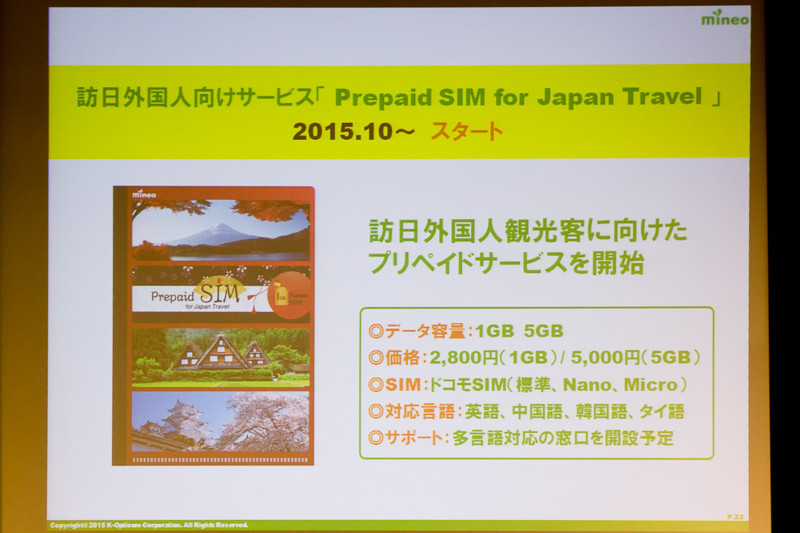 今回新たに海外渡航者向けのプリペイドサービス「mineo 海外プリペイドSIM」(データ通信)が9月より開始することも発表された。接続はアイルランドの「キュービックテレコム」で、こちらは世界の各国のキャリア(200カ国)のローミングサービスを展開している事業者。