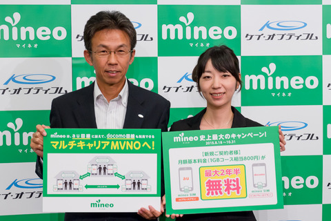 既報通り、ケイ・オプティコムは18日、仮想移動体通信事業者(MVNO)による携帯電話サービス「mineo(マイネオ)」( https://mineo.jp