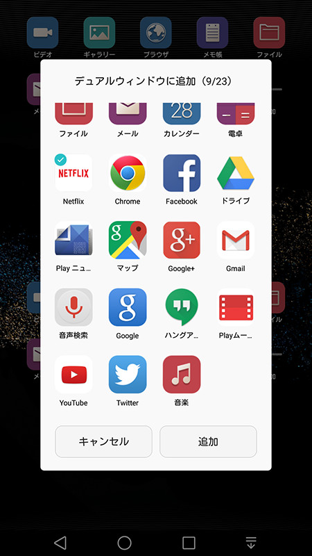 インストールされたアプリでデュアルウィンドウに対応するものは追加リストに加わる