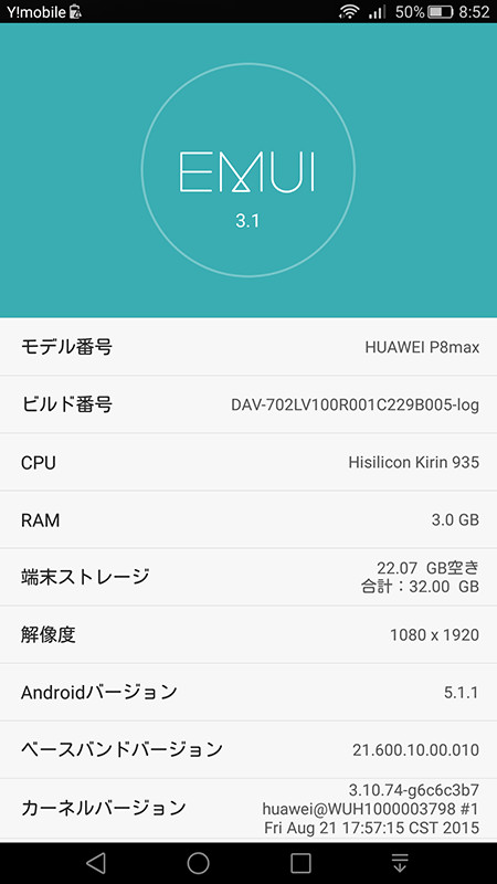 P8maxには3GBのRAMとオクタコアCPUに加え、OSがAndroid 5.1.1(開発コード名:Lollipop)と言うこともあり実に軽快に動く。