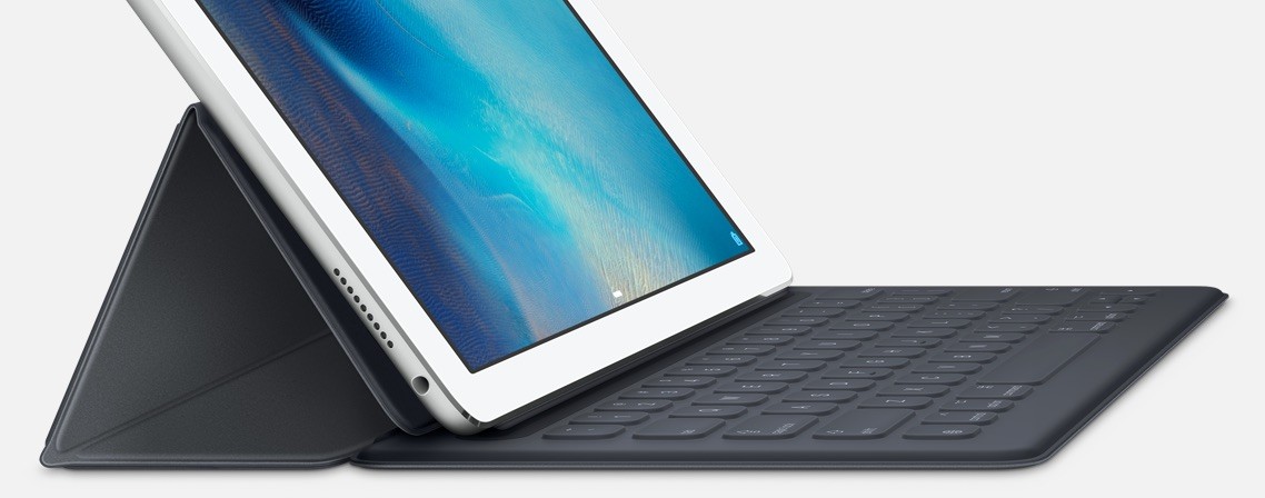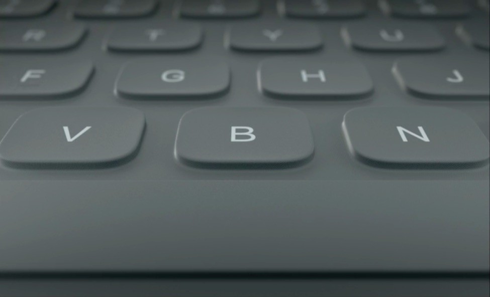 iPad Proのために開発された新しいSmart Keyboardはショートカットキーなどの一般的なフルサイズキーボードの便利さ備えつつ、表面を形どっているのは特別に織られた一枚のファブリック素材で、レーザーアブレーションによって1個1個のキーが精密に形成されていることで、快適な反応の良さ、正確さ、自然な操作感となっています。