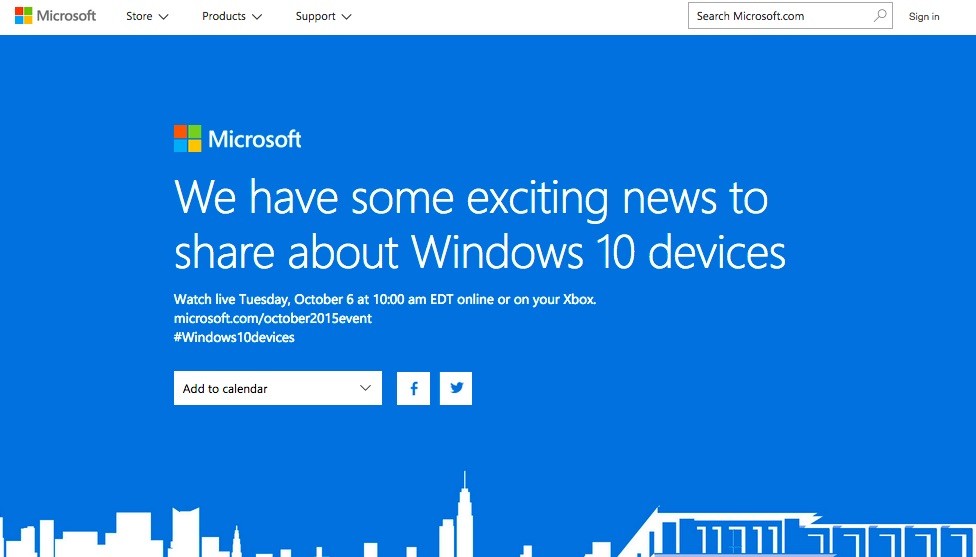 Microsoftは14日(現地時間)、同社が開発する最新OS「Windows 10」を搭載した製品を発表するイベントを現地時間(EDT)で2015年10月6日(火)10時から開催すると特設Webページを公開してお知らせしています。