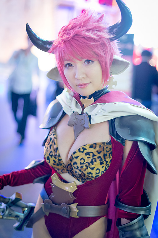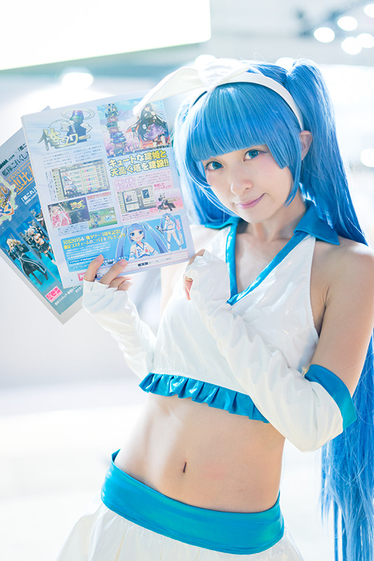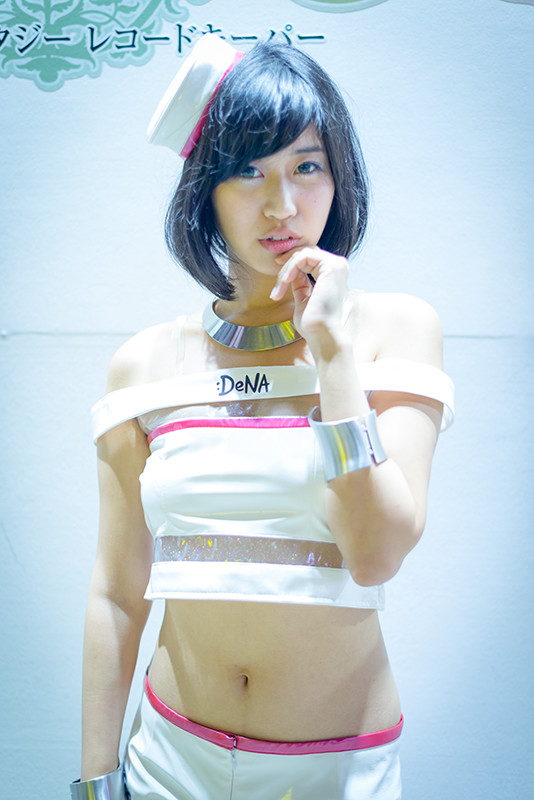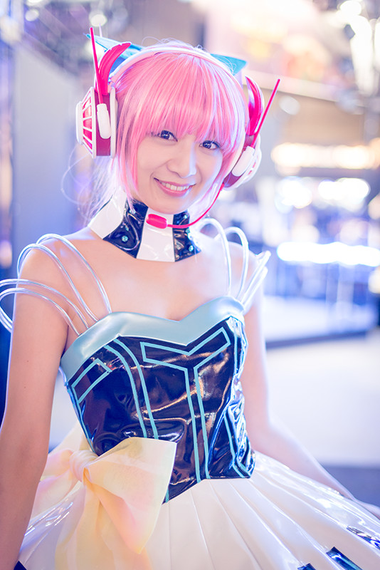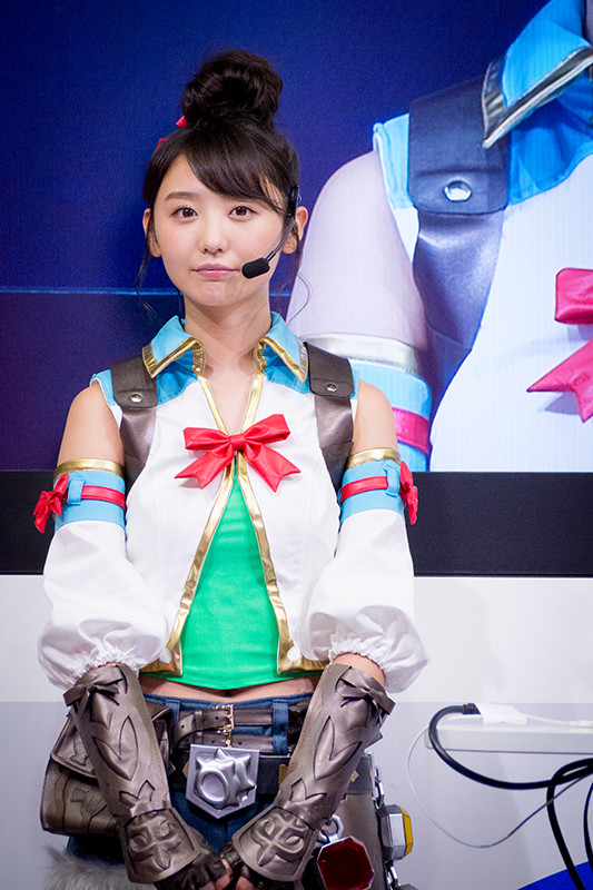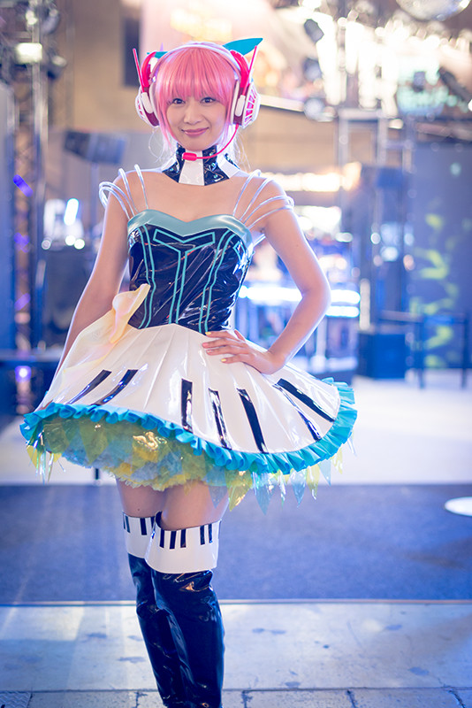 様々なコスチュームをまとったモデルさんたち。対戦ベーゴマRPG「ベーモンキングダム」のパオン・ディーピーブースのステージイベントには、おのののかさんが登場