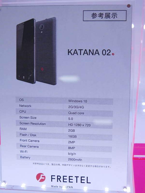 | Windows 10 Mobileスマホ「KATANA 02」も実は展示されていた! |