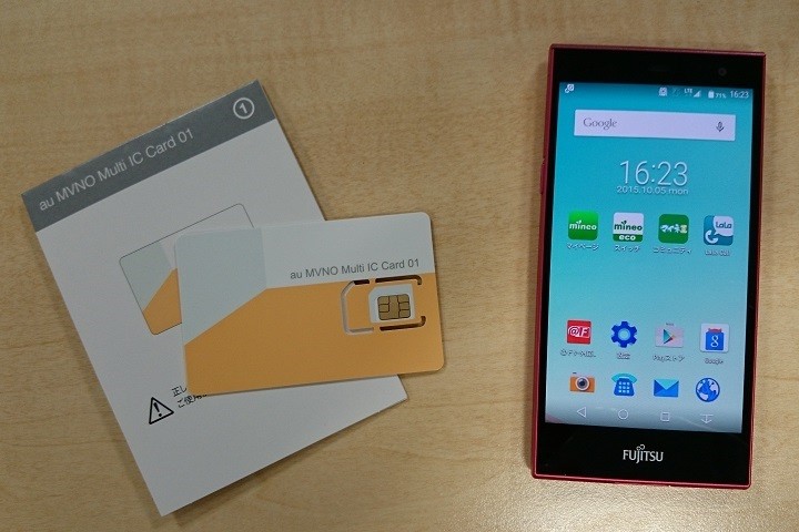 マルチキャリア対応ということで、auプラン、ドコモプランのSIMがそれぞれ刺さっていた。