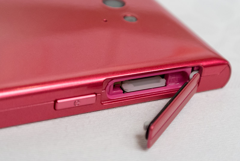 microSDカード、SIMカードスロットはキャップの中にある。