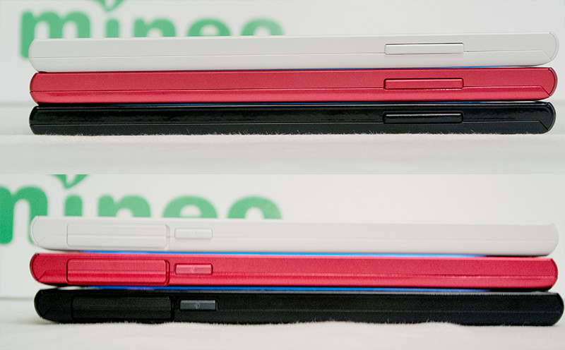 右側面にはボリュームキー(写真=上)、左側面にはmicroSDカード、SIMカードスロットがある(写真=下)。