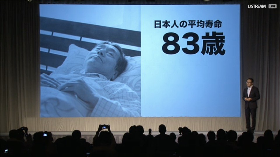 代表取締役社長の宮内謙氏が登壇。スマートフォンでゲームや音楽、映像だったりとさまざまなサービスを利用している。最近では当社が取り扱いを開始した「Netflix」も好評。すべては2008年のiPhoneにはじまった。
