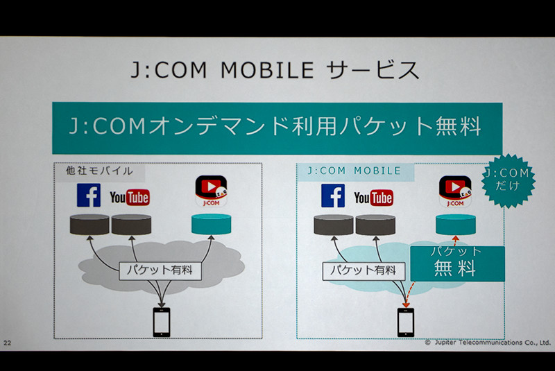 J:COM MOBILEの狙いは「競合がひしめき合う場所で新規ユーザーを開拓する」のではなく、「500万世帯の既存の加入者にモバイルというサービスで裾野を広げていく」ところにある。もちろん、このサービスが気に入ってJ:COMに加入してモバイルも利用するという新規顧客も獲得して行くのだろう。