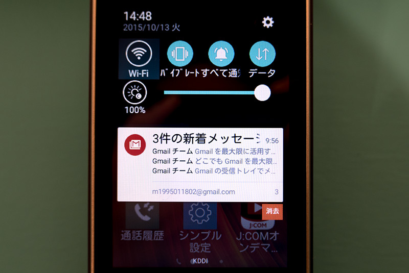 Androidではお馴染みの通知など、従来通りの操作確認可能だ。