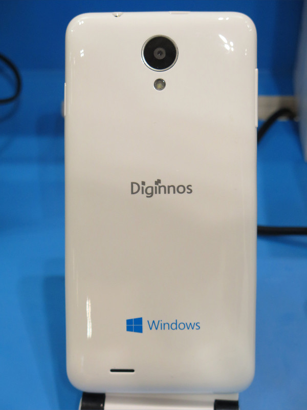 DG-M10はサードウェーブデジノスが販売を予定しているエントリーモデルのWindows 10 MobileをOSに採用したスマホで、販売価格は1万円台(予価)で、説明員によると「手に取りやすいWindows 10 Mobileスマホ」であるとのこと。