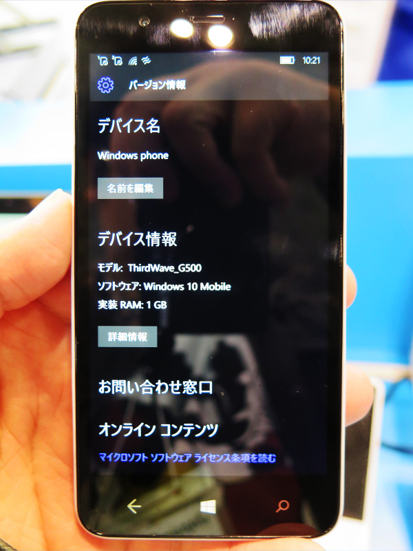 気になる発売日は未定で、説明員によると「マイクロソフトさんがWindows 10 Mobileの正式版をリリースしてくるタイミング次第、リリースが早ければ早いうちに出るかと思います。」ということでした。