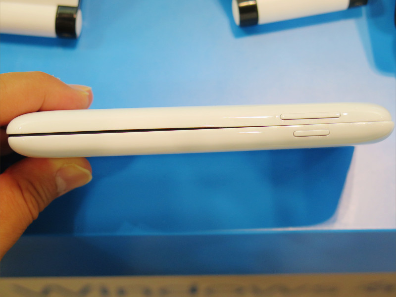 左側面には音量キー、右側面には電源キーがあります。写真のホワイトの他もブラックやブルーともにボタンの色は本体カラーと合わせてあり統一感がありますね。カラーバリエーションはホワイトおよびブラック、ブルーの3色。