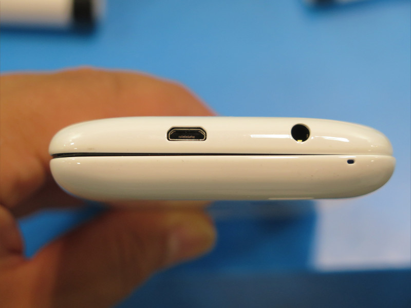 天面にはmicroUSB端子と3.5mmイヤホンジャックが、底面には通話用マイクがあります。