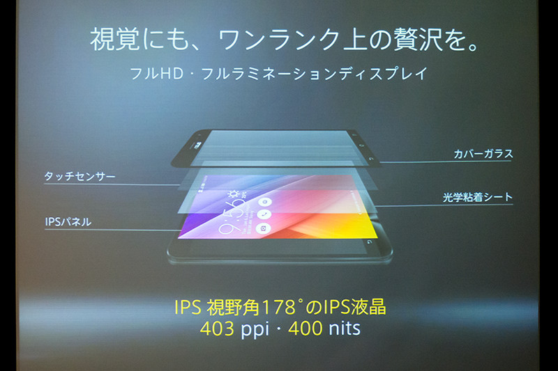さらに画面解像度が5インチモデルではHD(720×1280ドット)だったが、6インチモデルではFHD(1080×1920ドット)の液晶パネルを採用し、従来であれば5層になっていた構造部分が3層となり、部品点数が少ないことでタッチセンサーの感度や透過率の高さに貢献していると説明した。