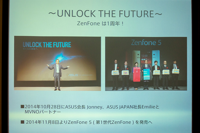 最初に登壇したASUS JAPAN マーケティング部 部長のシンシア・テン氏は、新製品の紹介の前に昨年発表した「ZenFone」シリーズの第1世代「ZenFone 5」から現在までを振り返った。