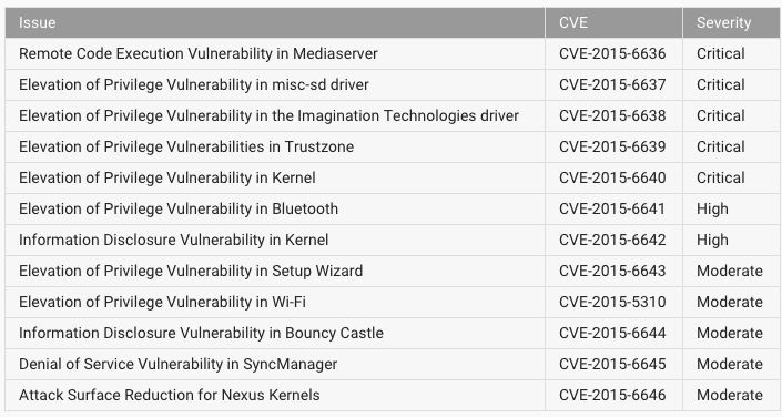 ・Nexus Security Bulletin - January 2016 | Android Open Source Project