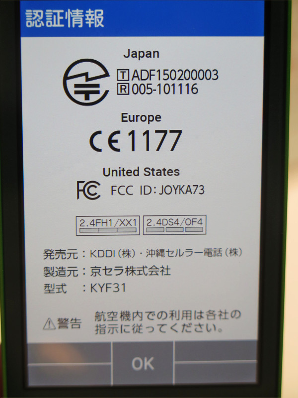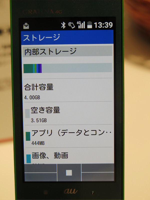 Androidのバージョンは5.1.1(開発コード名:Lolipop)。本体ストレージは8GB(ユーザー領域は4GB)とやや少なめで、microSDカードも32GBまでの対応となりますが、アプリ配信マーケット「Google Playストア」には非対応で、アプリダウンロードも「auスマートパス」のストア内で配布されているもののみとなるので足りなくなるようなことはなさそうです。