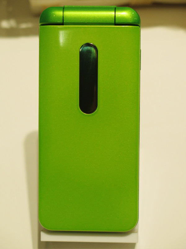 折りたたみ時の前面には約0.9インチのモノクロ有機ELディスプレイ、背面には約800万画素CMOSカメラ(LEDフラッシュライトつき)および外部スピーカー、充電用接点、おサイフケータイ(FelicaおよびNFC)のセンサーが配置されています。