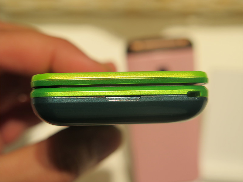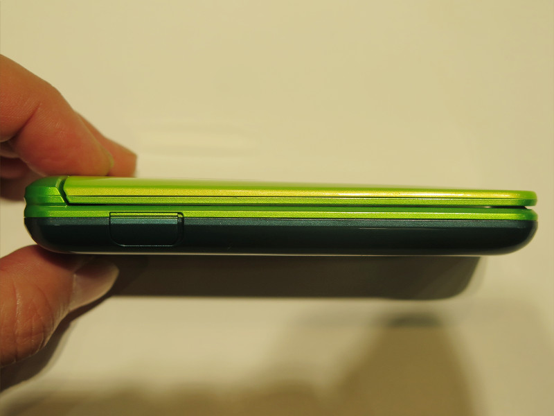 左側面にはカバー付きのmicroUSB端子、右側面には「マナー/シャッター」キーとストラップホール(本体底面側とつながっている)があります。マナー/シャッターキーは折りたたみ時には長押しでマナーモード切り替え、カメラ起動時にはシャッターキーとして利用可能です。