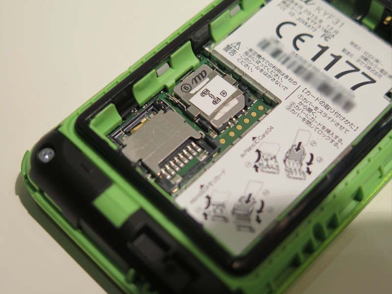 背面カバーを開くとバッテリーがあり、バッテリーを取り出すとSIMカードおよびmicroSDカードスロットがあります。