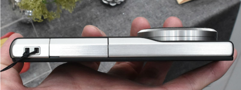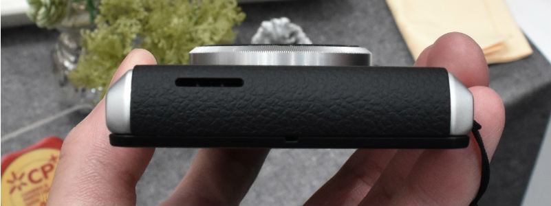 外観において旧モデルであるCM1と大きく違うポイントのひとつがレンズ周りのパーツカラーです。旧モデルではシルバーの金属パーツとなっていたものが、CM10ではブラックの金属パーツに変更されています。