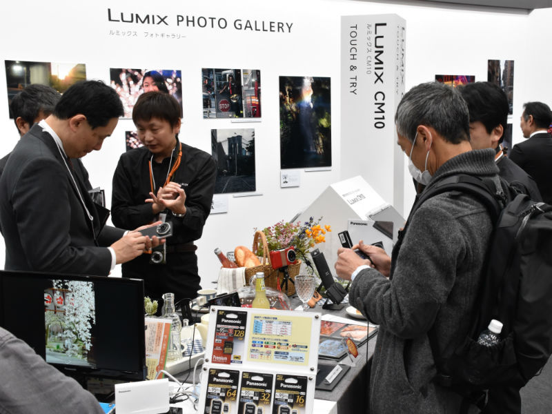 CP+自体はカメラと写真映像をメインテーマとして取り上げているイベントであるだけに、Panasonicのブース内にも一眼レフからコンパクトデジタルカメラまで、非常に多くの製品が展示されています。その中にCM10の展示ブースが1テーブルを割いて設けられていました。