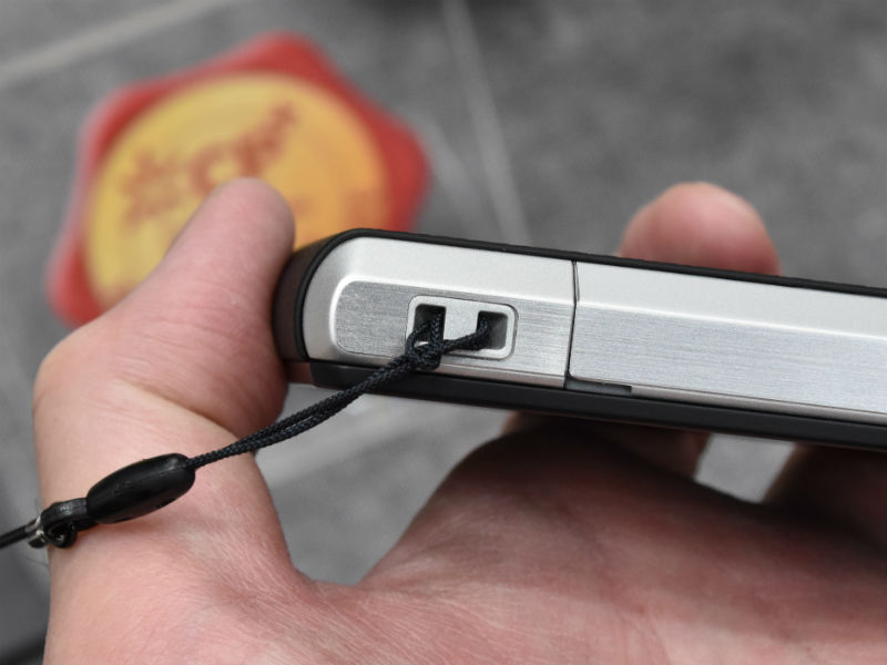 各種ボタン類やイヤホンジャック、microUSBコネクターなどの配置もCM1と変わりませんが、下面に従来設けられていた端子は廃止され、ここには新たにストラップホールを設置。