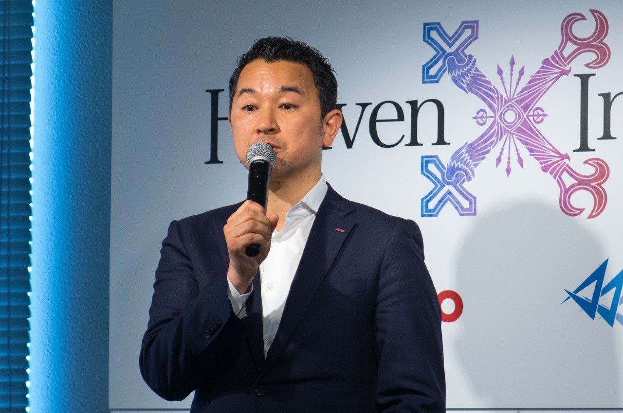 そして、新作ネイティブアプリとなる「Heaven×Inferno」の特長として、トライエースによる「美しいグラフィック」、代表作に「デュラララ!!」などがある成田良悟氏による「意外性のある脚本」、数多くのゲーム音楽を手がける古代祐三氏による「臨場感のあるサウンド」を挙げた。