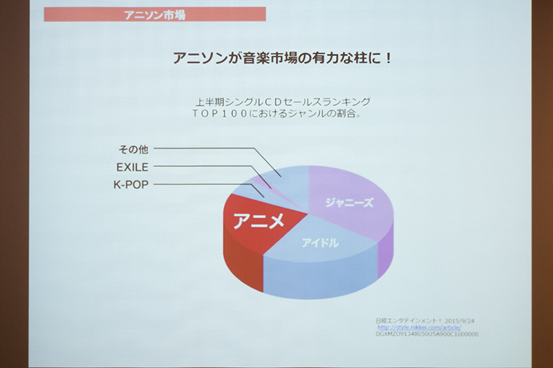これはアニソンというジャンルがジャニーズやアイドルなどに匹敵する音楽マーケットとなっており、同氏は「他のジャンルに負けない愛がある」と説明し、dアニメストアがそれをサポートしていくとした。