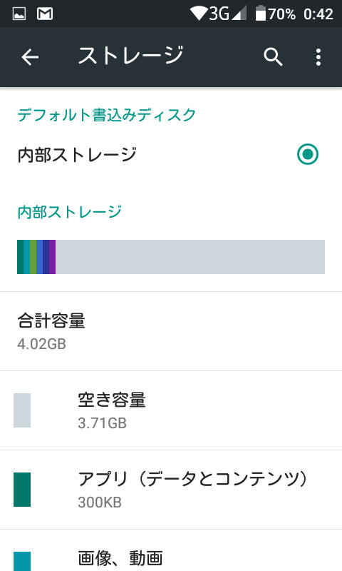 OSはAndroid 5.1(コード名:Lolipop)。内蔵ストレージは約4GBでユーザーエリアは約3.7GBとかなり少ない(筆者が常用しているゲーム以外のアプリ一式を入れたら残り1GBくらいにまでなった)ので、microSDカードはキチンと用意しておきたいところです。