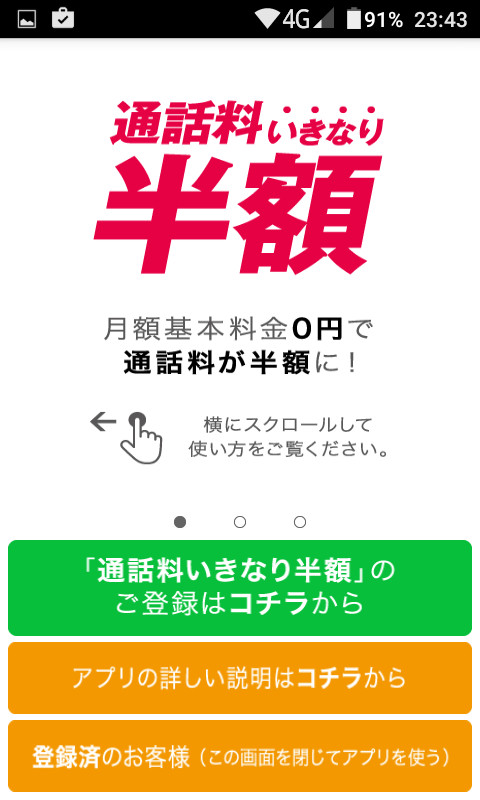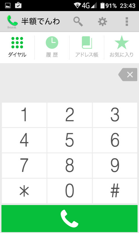 「通話料いきなり半額」の画面。もちろんテンキーとタッチの操作どちらでも操作可能