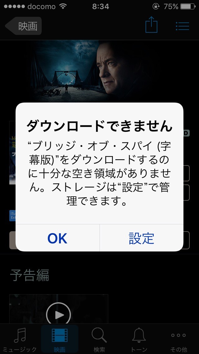 方法は簡単で、iTunes Storeで動画をレンタルしようとするだけ。空き容量が少なくなっていれば、有料のものもレンタルしようとしてダウンロードすると「ダウンロードできません」と表示されてレンタルできません。