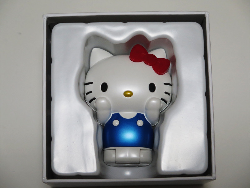 キティちゃんの外観を前後にまっぷたつに割る形での折りたたみ型で、足の部分がヒンジとなり、通話とSMSに特化したSIMフリーの3G対応フィーチャーフォン(ケータイ)ながらプラットフォームにはAndroidを採用しているなど、マニア心を相当くすぐる仕様ということで、個性派製品が大好きな筆者も母親に白い目で見られながらさっそく購入しました。