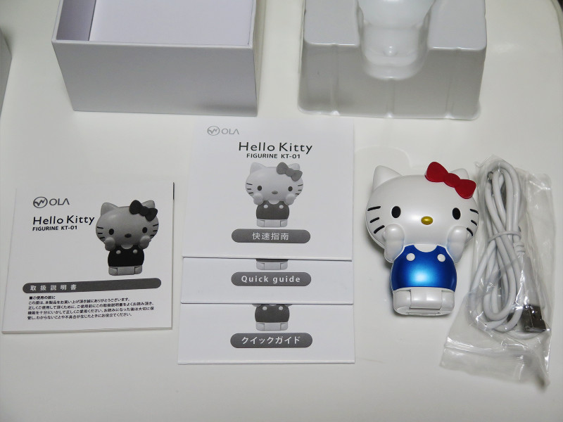 内容物としてはハローキティフォン本体のほか、microUSBケーブルや取扱説明書、クイックスタートガイド3冊(日本語版、中国語版、英語版)となります。