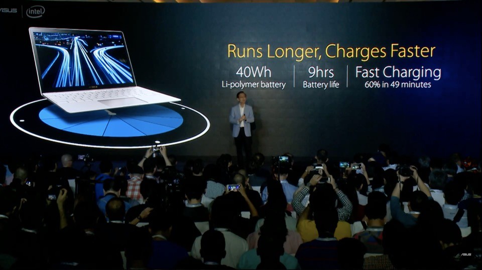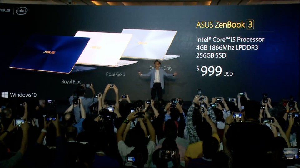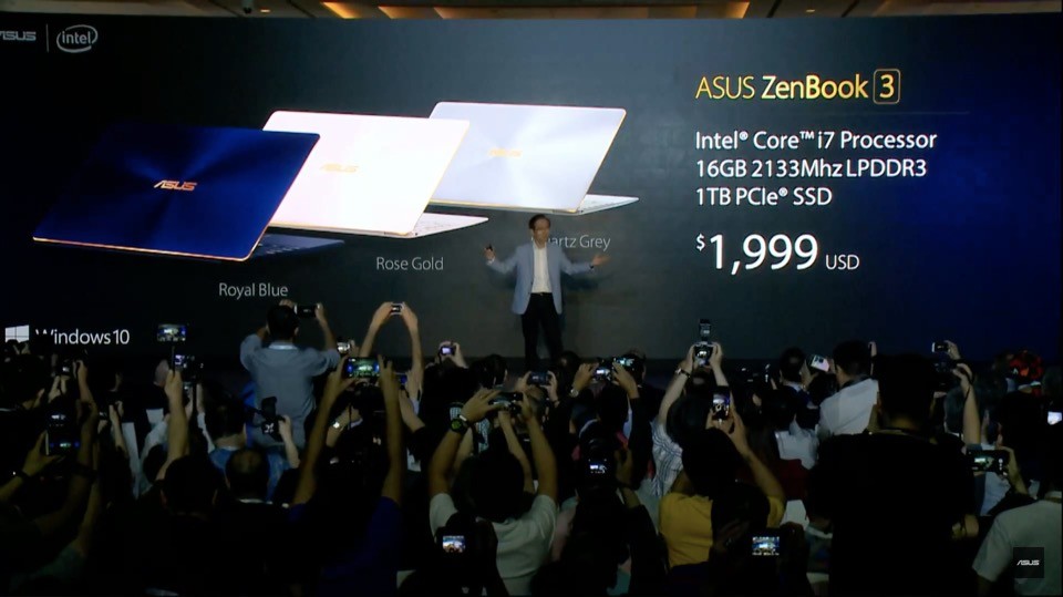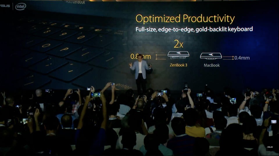 本記事では順番を入れ替えていますが、発表会で最初に披露されたのはモバイルノートPCの新しいフラグシップモデルであるZenBook 3でした。徹底的にAppleの「MacBook」と比較され、薄さ約