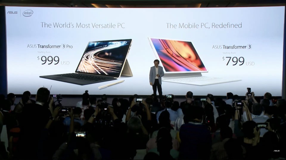 ZenBook 3に続いて2in1型のノートPCであるTransformer 3とTransformer 3 Proが発表されました。価格はTransformer 3が799ドル(約89,000円)から、Transformer 3 Proが999ドル(約111,000円)からの予定。