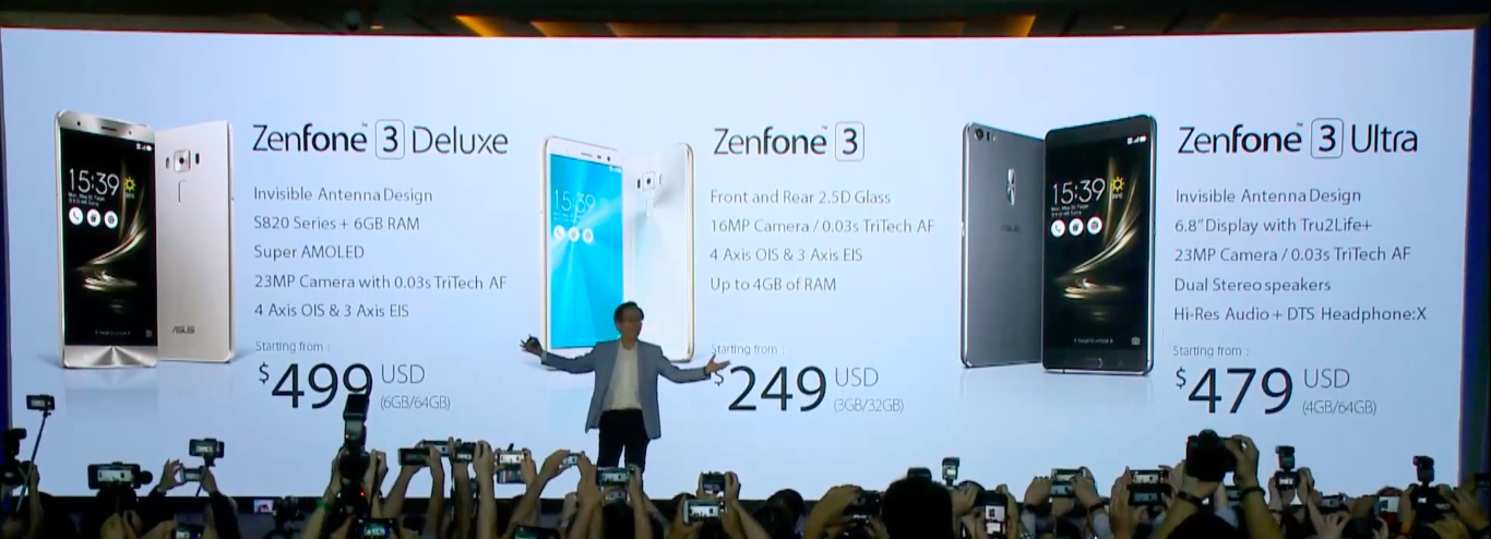 各機種ともにグローバル市場で今夏から発売予定。アメリカでの価格は、ZenFone 3が249ドル(約28,000円)から、ZenFone 3 Deluxeが499ドル(約56,000円)から、ZenFone 3 Ultraが479ドル(約53,000円)から。各機種の詳細な製品情報についてはすでに公開している以下の記事を参照してください。