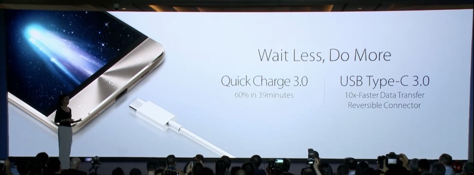 その他、USB端子が新規格のUSB Type-Cになっており、USB 3.0の高速データ転送に加え、ZenFone 3 DeluxeとZenFone 3 Ultraは急速充電「Quick Charge 3.0」に対応。バッテリー容量は、ZenFone 3とZenFone 3 Deluxeが3000mAh、ZenFone 3 Ultraが4600mAhでともに取り外しは不可。
